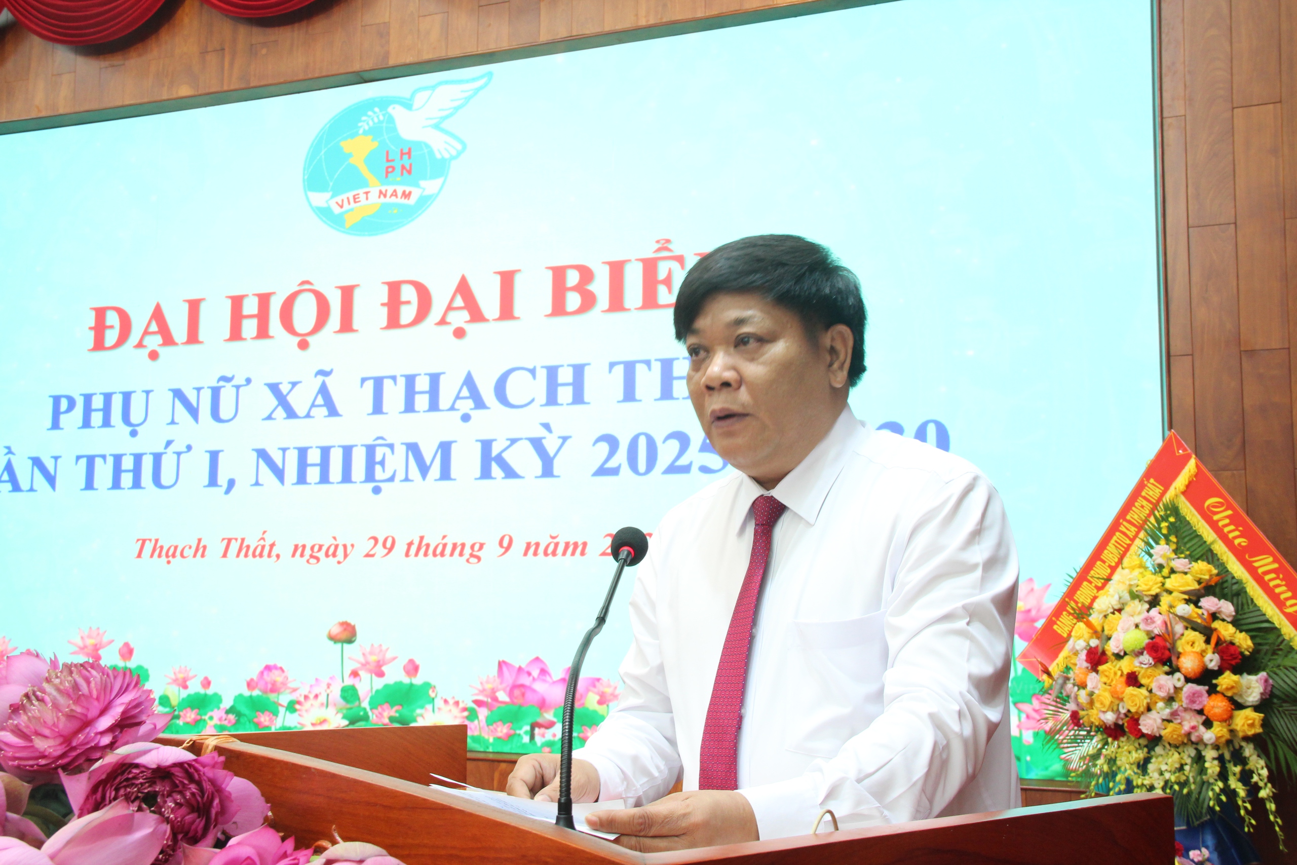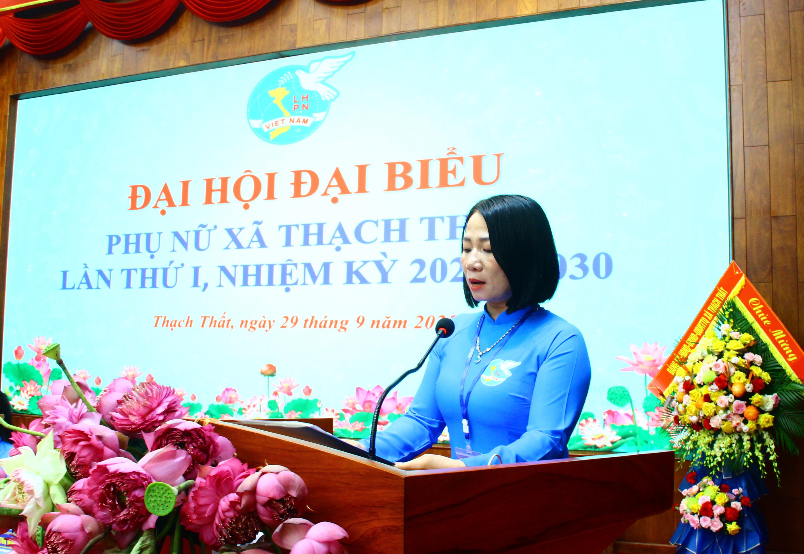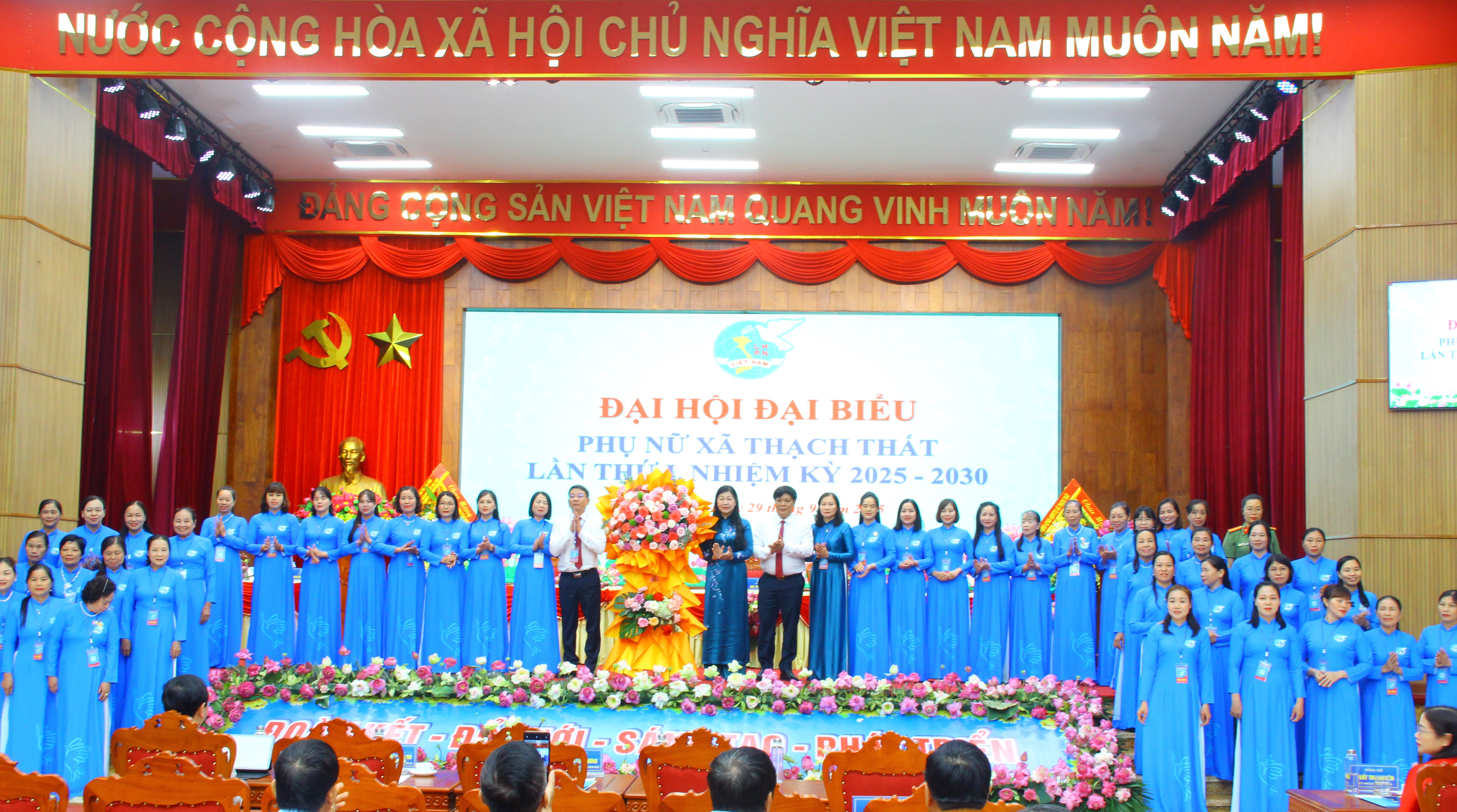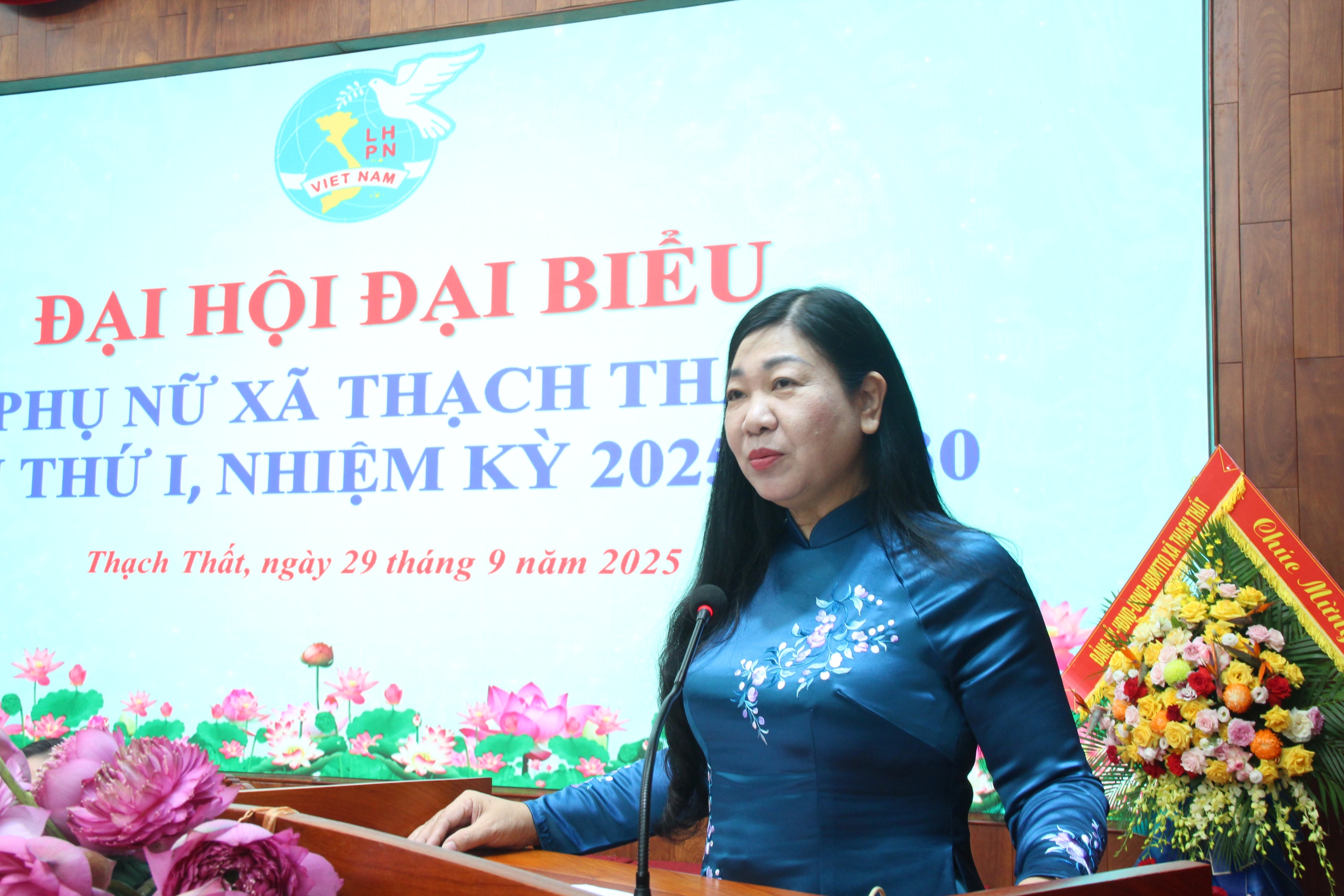 Phát biểu chỉ đạo tại Đại hội, đồng chí Nguyễn Lan Hương - Phó Chủ tịch ủy ban trung ương MTTQ Việt Nam, Ủy viên ban thường vụ Thành ủy, chủ tịch UBMTTQ Việt Nam Thành phố và đồng chí Nguyễn Đăng Quân - Phó Bí thư thường trực Đảng ủy xã đã biểu dương, ghi nhận những thành tích mà Hội LHPN xã Thạch Thất đã đạt được trong nhiệm kỳ qua, đồng thời các đồng chí cũng đề nghị trong nhiệm kỳ mới, Hội LHPN xã cần đẩy mạnh tuyên truyền sâu rộng về vị trí, vai trò, chức năng, nhiệm vụ của Hội trong bối cảnh mới; xây dựng đội ngũ cán bộ hội có phẩm chất đạo đức, bản lĩnh, kiến thức, kỹ năng, tâm huyết, trách nhiệm; đổi mới mạnh mẽ nội dung, phương thức hoạt động, thực hiện tốt việc ứng dụng chuyển đổi số trong tổ chức hoạt động Hội; mở rộng các mô hình thu hút hội viên phụ nữ theo chuyên đề, xây dựng tổ chức hội ngày càng phát triển, góp phần xây dựng khối đại đoàn kết toàn dân tộc. Quan tâm công tác tuyên truyền, giáo dục truyền thống, bản lĩnh chính trị, lòng tự hào dân tộc, khát vọng vươn lên mạnh mẽ của phụ nữ Thạch Thất trong kỷ nguyên mới; động viên khích lệ hội viên phụ nữ tích cực học tập, nâng cao hiểu biết về mọi mặt , gắn với việc học tập và làm theo tư tưởng, đạo đức, phong cách Hồ chí Minh, phong trào "Bình dân học vụ số"; tích cực tham gia vào các phong trào, các cuộc vận động do MTTQ phát động. Chủ động triển khai tích cực các hoạt động hỗ trợ phụ nữ phát triển kinh tế, khởi nghiệp, phát triển doanh nghiệp nữ, làm giàu chính đáng, xây dựng thương hiệu, quảng bá, kết nối tiêu thụ sản phẩm địa phương. Chủ động nắm bắt tình hình tư tưởng, dư luận trong các tầng lớp phụ nữ, tuyên truyền vận động các tầng lớp phụ nữ thực hiện tốt đường lối chủ trương của Đảng, chính sách pháp luật của Nhà nước. Chủ động đề xuất triển khai thực hiện tốt các hoạt động giám sát, phản biện xã hội; tham gia tích cực cuộc bầu cử đại biểu quốc hội khóa XVI và đại biểu HĐND các cấp nhiệm kỳ 2026-2031.