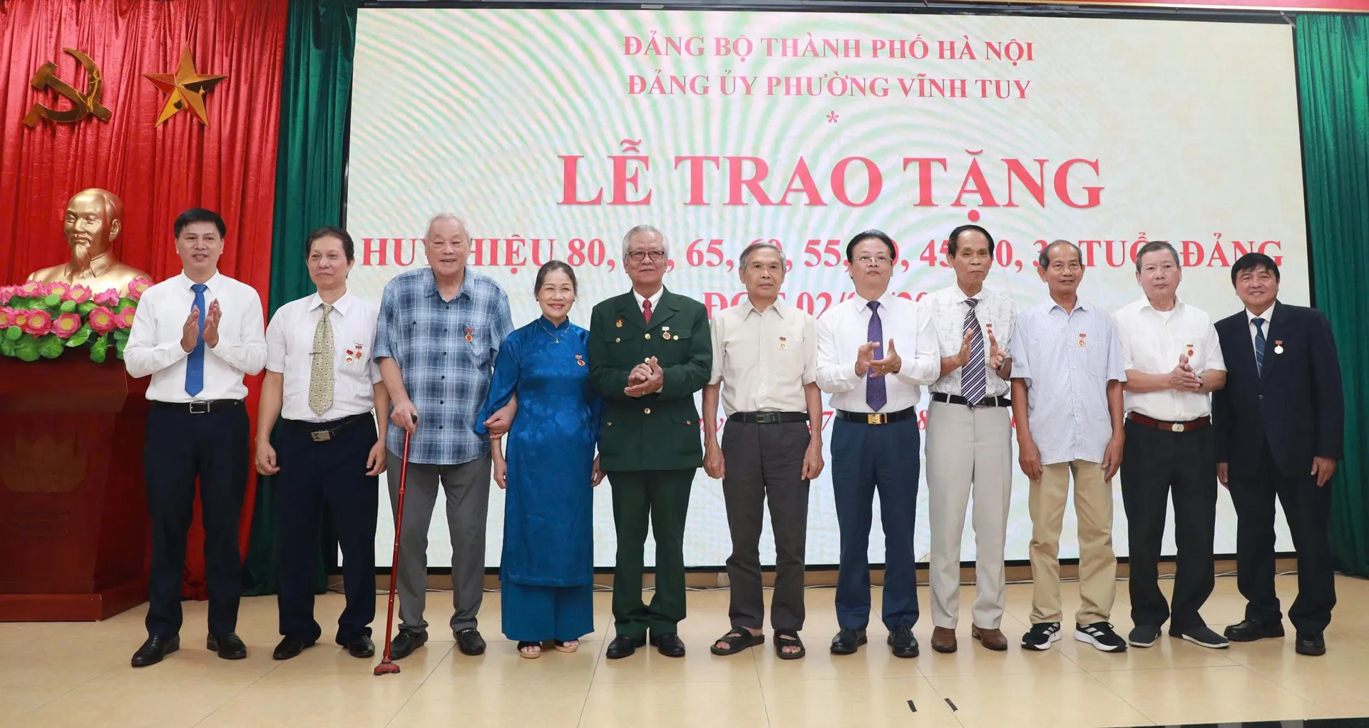 Lãnh đạo phường Vĩnh Tuy trao Huy hiệu 60 năm, 55 năm, 50 năm tặng các đảng viên