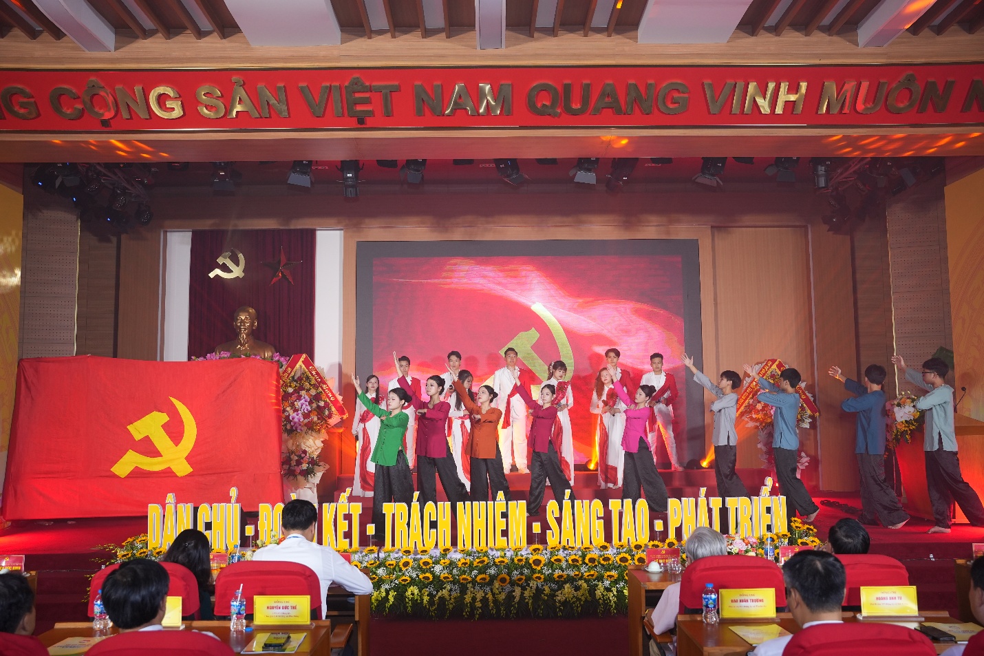 Lãnh đạo Đảng ủy xã tặng hoa chúc mừng đại hội