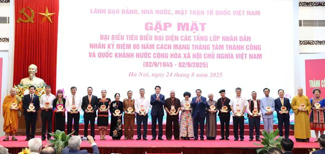 Kỷ niệm 80 năm Cách mạng tháng Tám thành công và Quốc khánh 2/9, hôm nay, 24/8, tại Trung tâm Hội nghị Quốc tế (Hà Nội), Ủy ban T.Ư MTTQ Việt Nam long trọng tổ chức Hội nghị gặp mặt của lãnh đạo Đảng, Nhà nước với 300 đại biểu tiêu biểu đại diện các tầng lớp Nhân dân.