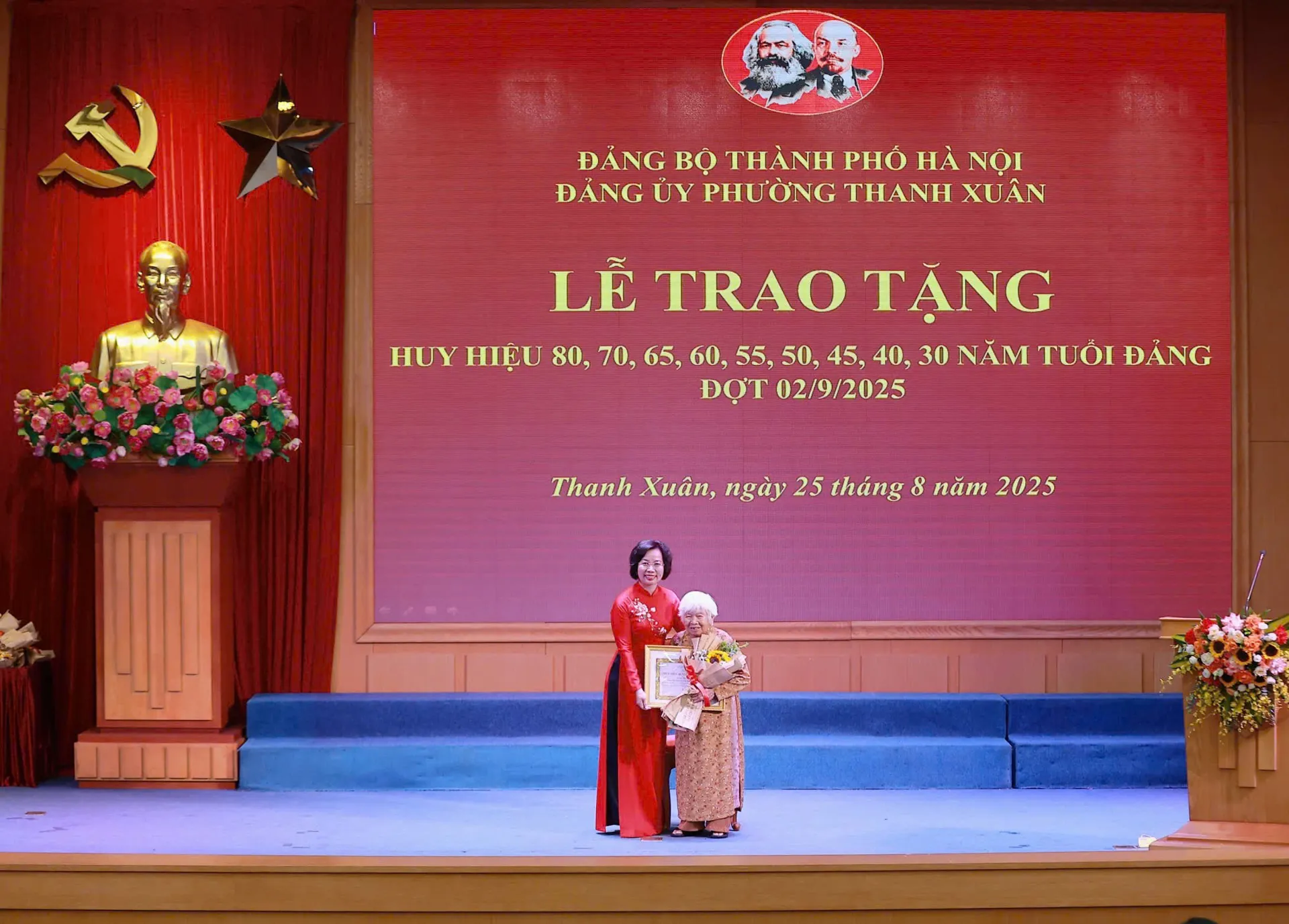 Chúc mừng các đảng viên được nhận Huy hiệu Đảng, Bí thư Đảng ủy phường Thanh Xuân Nguyễn Huy Cường nhấn mạnh: “Đây là minh chứng cho sự kiên trung, bền bỉ và cống hiến trọn đời vì sự nghiệp cách mạng của các đảng viên. Các đồng chí chính là niềm tự hào, là động lực để chúng tôi - những người kế tiếp - phấn đấu rèn luyện và trưởng thành. Với tất cả tình cảm và trách nhiệm, tôi xin hứa sẽ đem hết tâm sức, trí tuệ, cùng tập thể Đảng bộ, chính quyền và Nhân dân phường Thanh Xuân xây dựng Đảng bộ ngày càng trong sạch, vững mạnh, xây dựng phường Thanh Xuân phát triển toàn diện, bền vững, văn minh và hiện đại”.